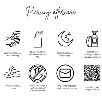 A new piercing requires proper aftercare, follow these steps in aiding your piercing(s) healing process:
